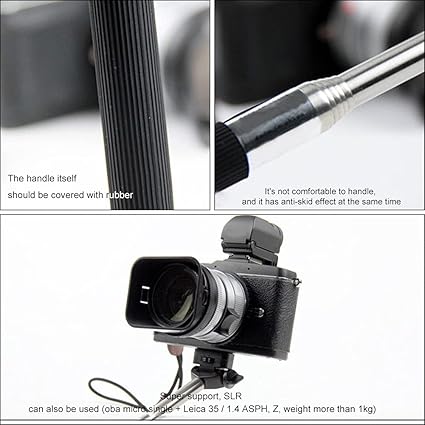• Non-slip: There is rubber anti-slip on the connecting camera part, which can stabilize your device. The grip is covered with rubber, and the hand is non-slip.